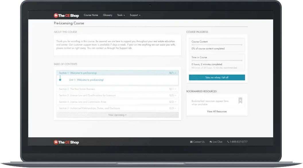 Expiration Date of Course: Our partner The CE Shop’s Pre-Licensing courses expire six months after the date of purchase. Each student will be granted a one-month extension at no charge, to be applied immediately after the initial six-month term. For any reactivation or extension of the course after the seventh month, The CE Shop will charge the student 20% of the current retail price of the course for each 30-day extension or partial 30-day extension in the event that the course finally terminates before the end of the final 30-day extension. Students may also elect to re-enroll for 50% of the current retail price of the course, if the course has hit the year expiration or the student is at the 7-month mark and wants to repurchase and restart the course and enrollment. Extensions or reactivations cannot be granted beyond 12 months from the purchase of the course since, in all events, the course terminates 12 months after purchase.